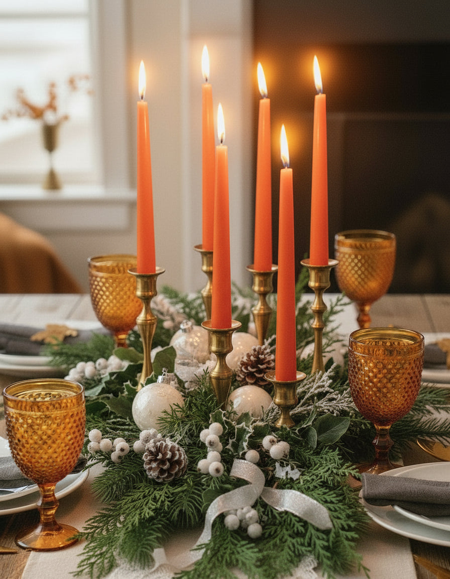 Winter Tangerine Tapered Dinner Candles 23cm High (box50/case100/single candle)