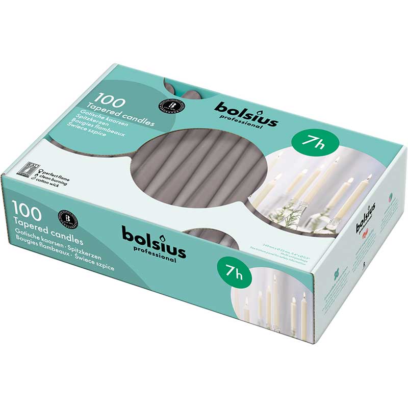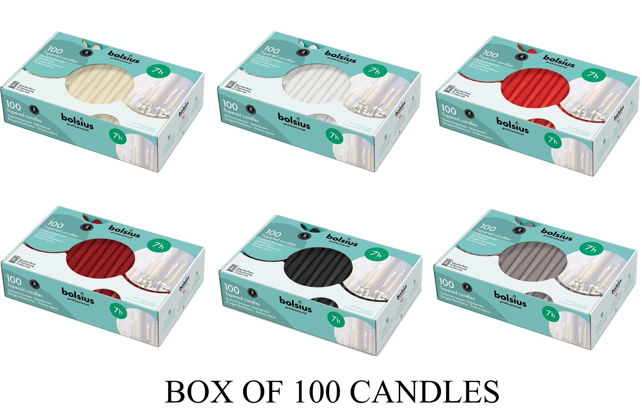 High-quality, drip-resistant candles from Europe.D: 23mm x H: 230mm Burning time approx. 7.5 hours (condition dependent). Case Size: 100